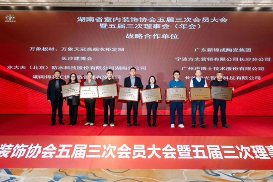 本次会议荣誉授牌环节,万象板材与万象天冠高端衣柜定制凭借过硬的综合实力与市场竞争力,成功获评战略合作单位,并获授荣誉奖牌。
