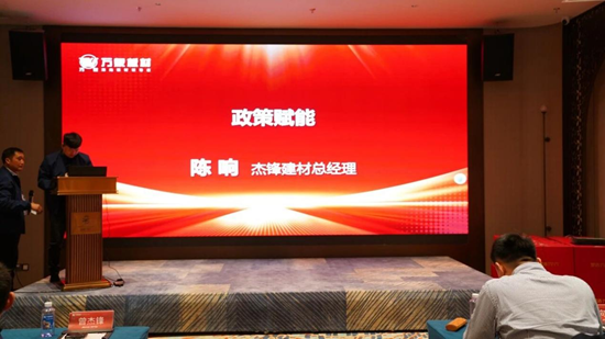 杰锋建材总经理陈响发布本次活动专属利好政策,以极具诚意的扶持力度直击渠道需求,为加盟商赋能护航、提振信心。
