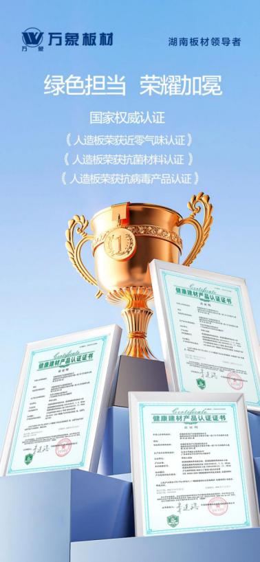 本次健康建材产品认证、儿童安全级产品认证的荣膺,既是对万象板材全生命周期管理实力的权威认可,更是品牌深耕绿色建材领域的里程碑见证。我们将以此为新起点,持续锻造产品核心竞争力,以 “健康环保+可持续”的双重承诺,为每一位消费者筑牢品质生活的坚实基底,以标杆姿态引领行业迈向更具生态价值的可持续未来!