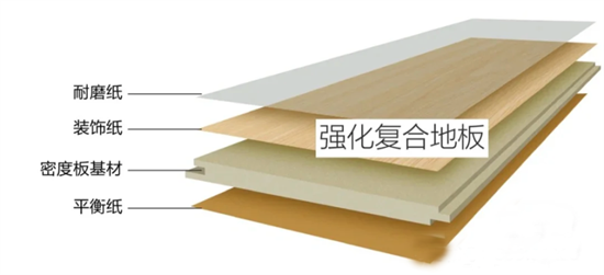 强化地板也叫复合地板,强化复合地板是由耐磨层、装饰层、纤维板芯层、平衡防潮底层压制成的。
