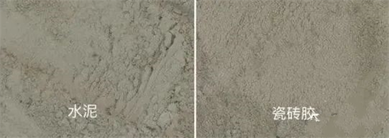 瓷砖胶和水泥砂浆分别配比,加水,搅拌成浆料,瓷砖胶顺滑乳膏状、粘稠度高,缓缓流动;水泥浆有结块和颗粒物,迅速断离。