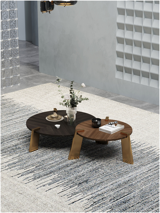 搭配黑胡桃与金属板材结合而成的茶几,从细节处流露高品质的生活方式。柔和的桌盘,细腻内敛,自然逼真的纹理,透露出一种高级感。