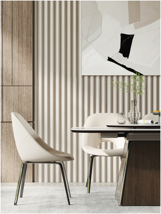 此款意式简奢餐椅采用全软包设计,靠背弧度的设计充分考虑人体工学,完全可以贴合人体背部和臀部曲线。餐椅自带的高级感,轻松营造意式餐厅的就餐氛围。