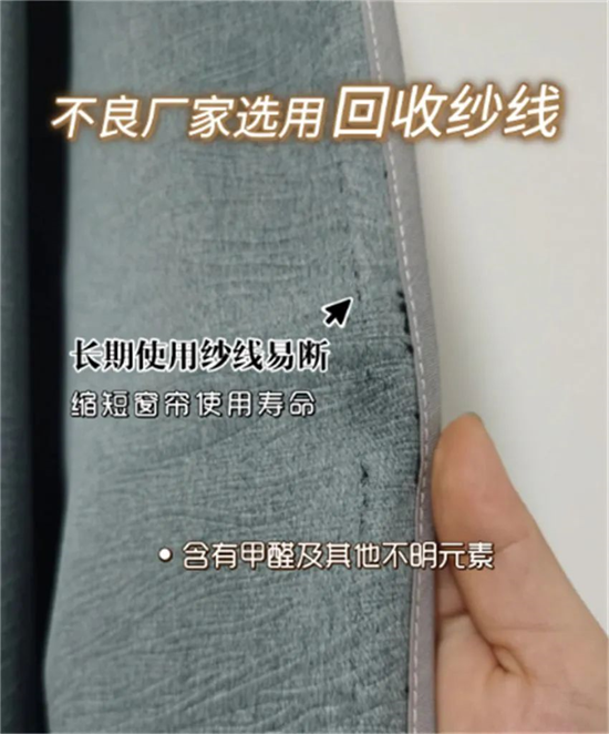 小提醒:不要选带黑丝的高精密面料,不良厂家用回收纱线做黑丝遮光,长时间使用不仅会断,还带来了大量甲醛污染!!!