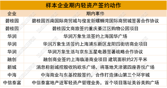 期内,轻资产市场传来不少样本企业的签约消息,主要以华润万象生活、碧桂园文商旅、中海商业等企业为代表。
