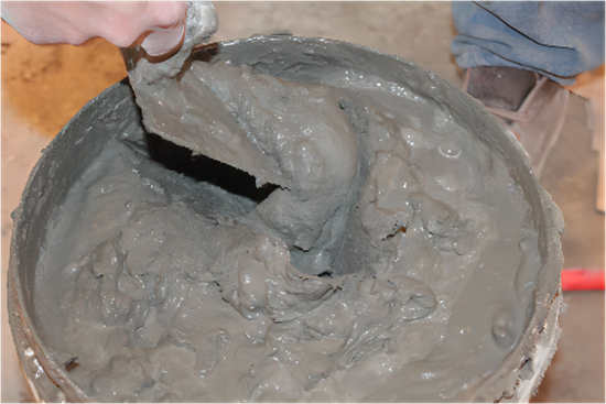 首先,用铁锹搅拌很难将瓷砖胶混合均匀,且容易出现粉团,导致其中的添加剂不能充分溶解,降低产品效力;其次,在地上搅拌容易与灰尘、杂物等混合在一起,受到污染,进而影响产品的使用效果。