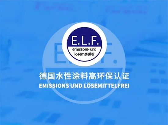 E.L.F.为德语Emissionsminimiert(排放最小化),Lösemittelfrei(无溶剂),Weichmacherfrei(不含增塑剂)的缩写,是德国水性涂料高环保要求的标志。根据德国法律规定,凡经过TUV检测,涂料中不含有机溶剂和挥发性有害物质的产品,才可使用该环保标志。