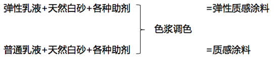 真石漆主要组成乳液 + 彩砂 + 各种助剂 = 真石漆